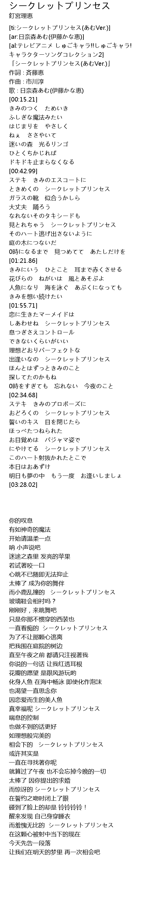 | [00:01.21] | 「シークレットプリンセス(あむVer.)」 |