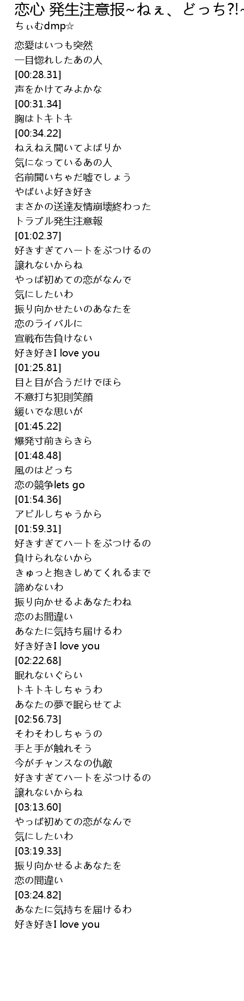 | [03:08.46] | 好きすぎてハートをぶつけるの |