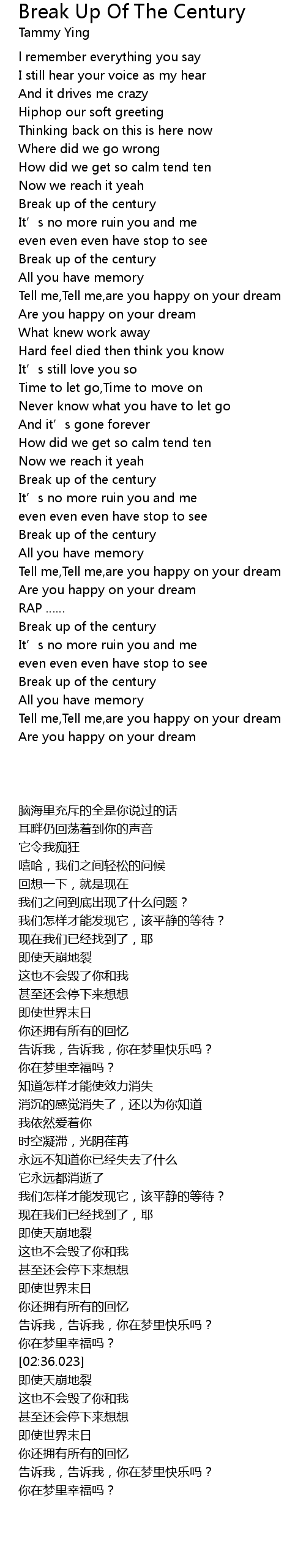 | [03:02.023] | Break up of the century |