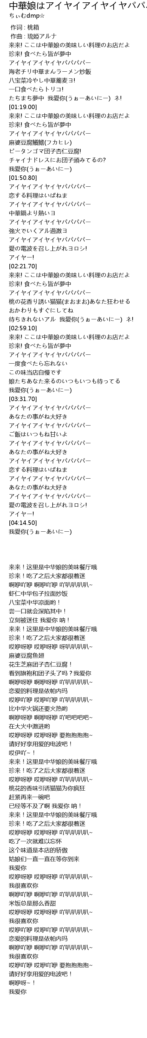 | [03:04.10] | 来来! ここは中華娘の美味しい料理のお店だよ |