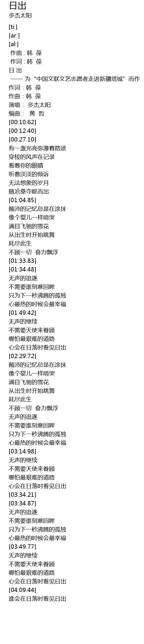 | [00:01.94] | 日 出 |