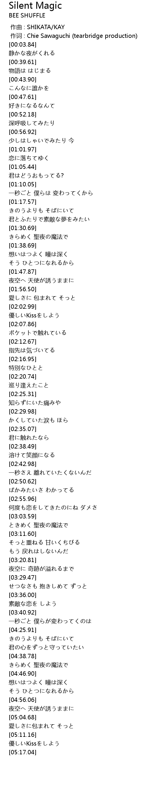 | [00:00.00] | 作曲 : SHIKATA/KAY |