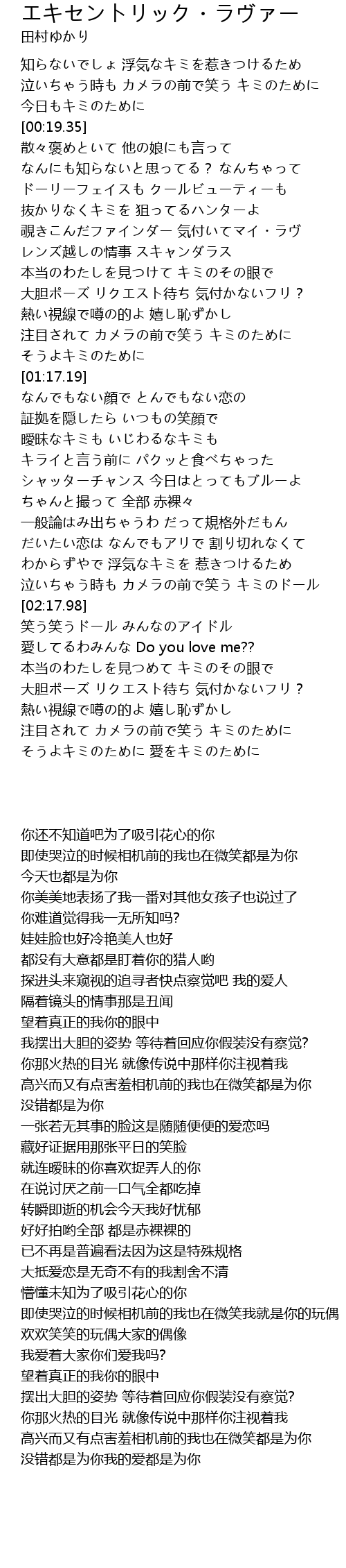 | [02:45.52] | 愛してるわみんな Do you love me?? |