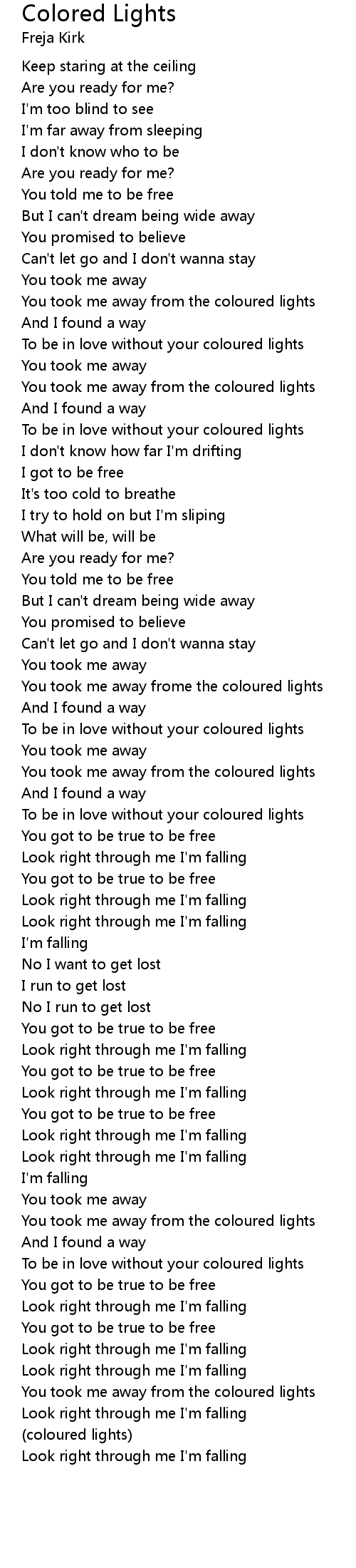 To be in love without your coloured lights |
