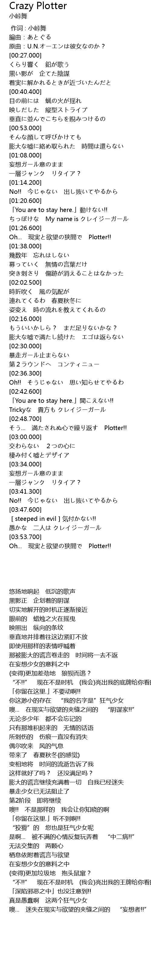 | [02:49.000] | そう... 満たされぬ心で繰り返す Plotter!! |