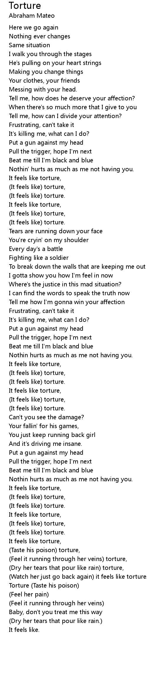 (Dry her tears that pour like rain) torture, |