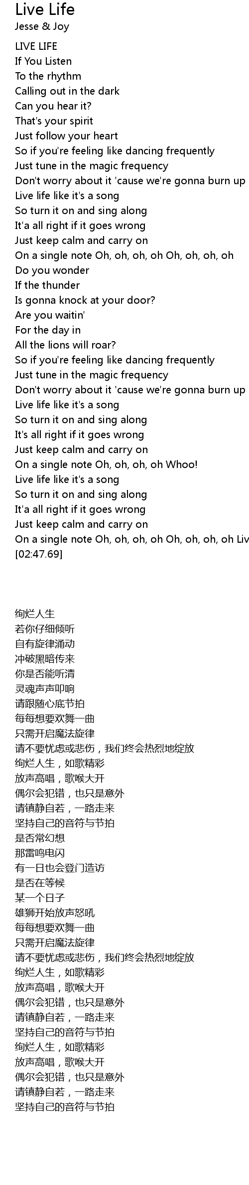On a single note Oh, oh, oh, oh Oh, oh, oh, oh Live life! |