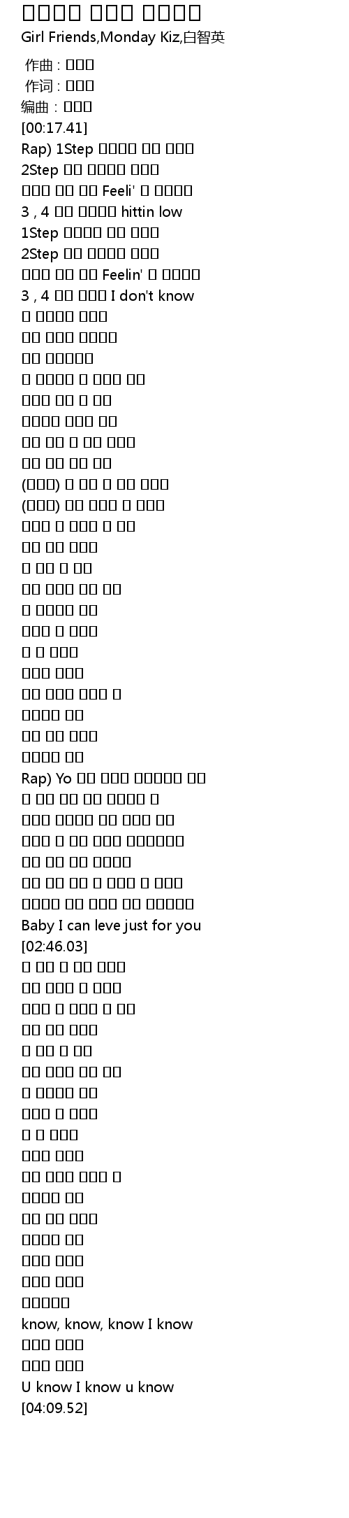 | [00:40.26] | 3 , 4 내게 말해죠 I don't know |