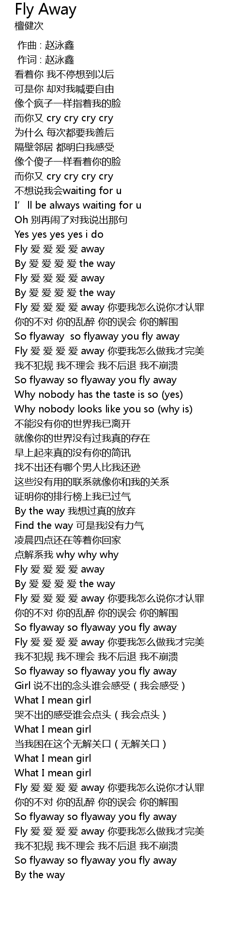 | [00:45.18] | Fly 爱 爱 爱 爱 away |