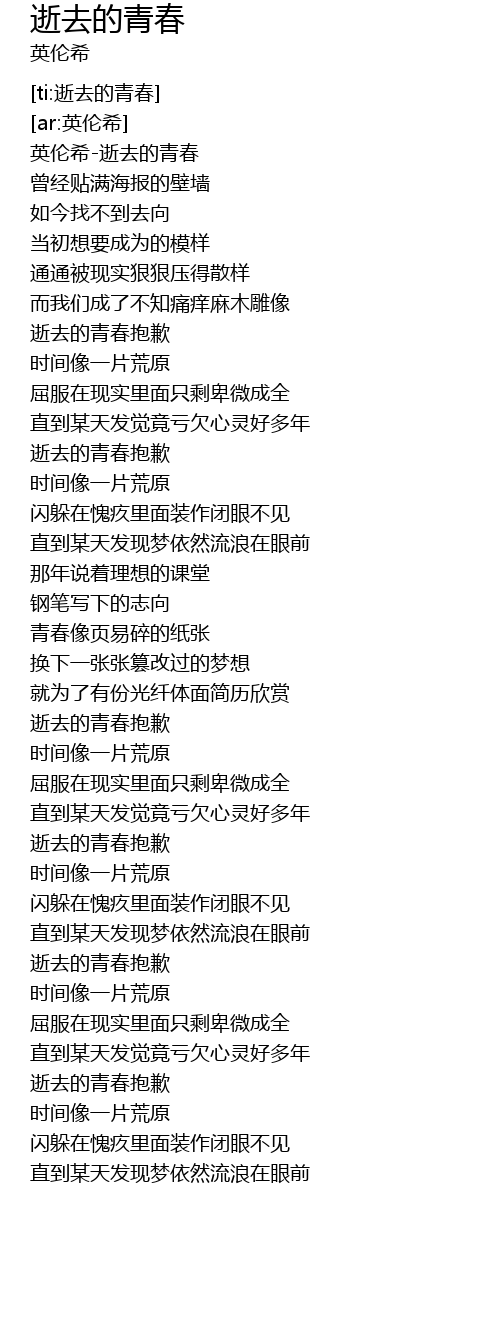 | [00:00.167] | yīng lún xī shì qù de qīng chūn |