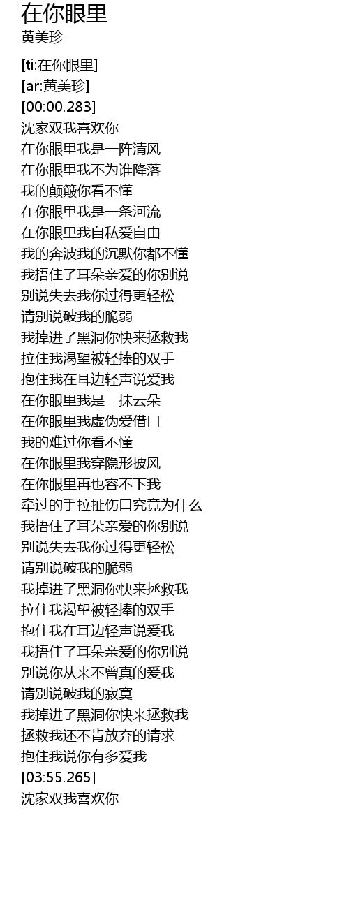 | [01:49.872] | 在你眼里我是一抹云朵 |