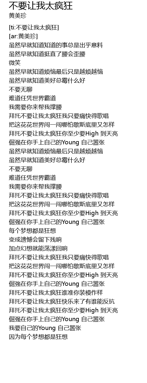| [01:37.834] | 拜托不要让我太疯狂我只要痛快得歌唱 |