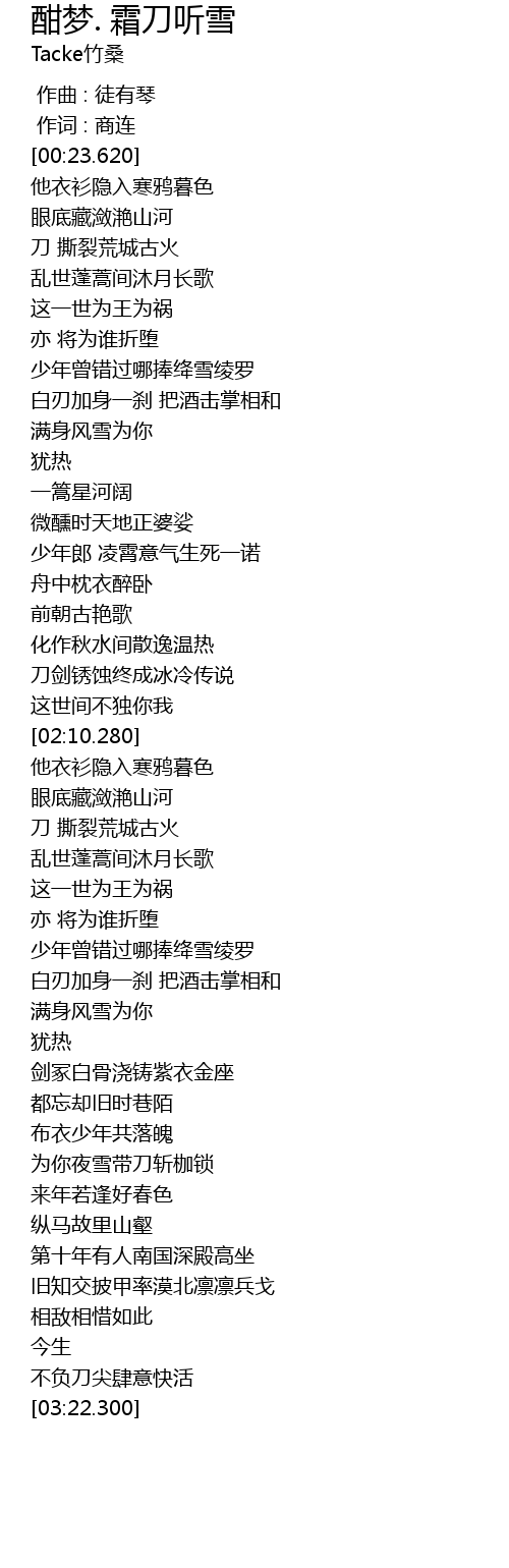 | [02:59.590] | 为你夜雪带刀斩枷锁 |