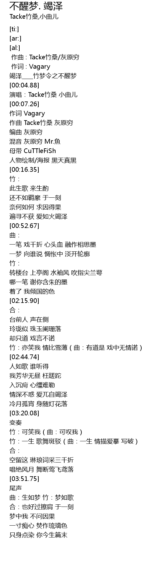 | [00:03.38] | 竭泽____竹梦令之不醒梦 |