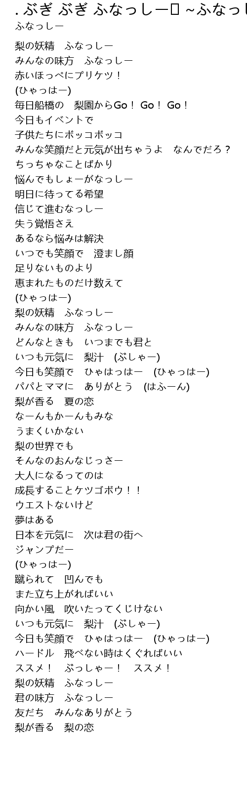 | Song | . ぶぎ ぶぎ ふなっしー♪ ~ふなっしー公式テーマソング第二弾~ |