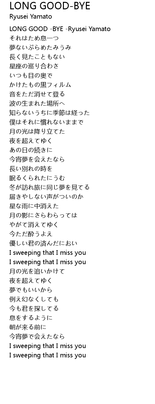 | [00:00.00] | LONG GOOD -BYE -Ryusei Yamato |