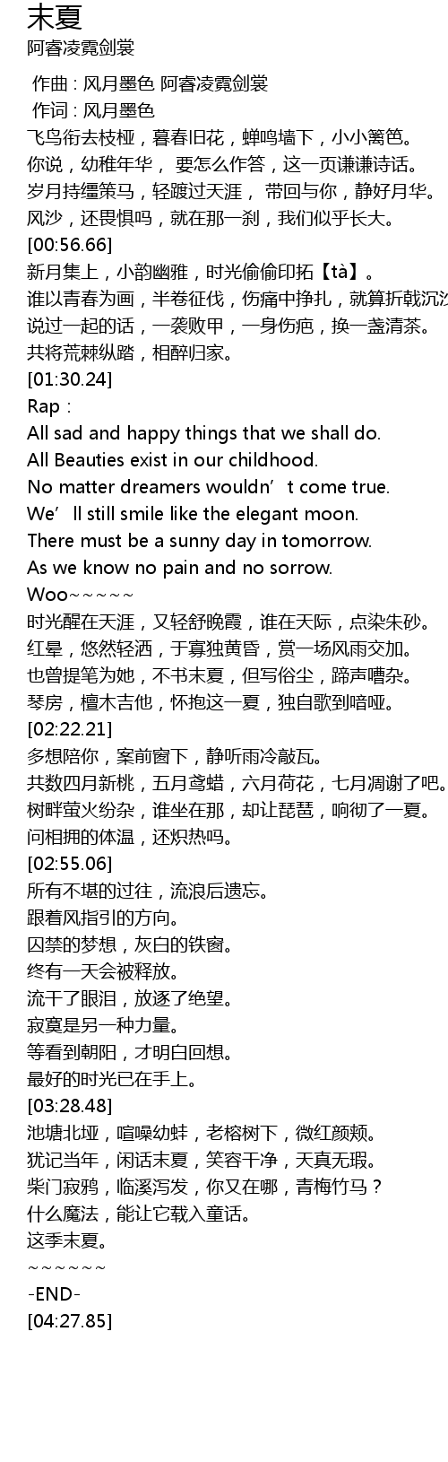 | [03:36.71] | 犹记当年,闲话末夏,笑容干净,天真无瑕。 |