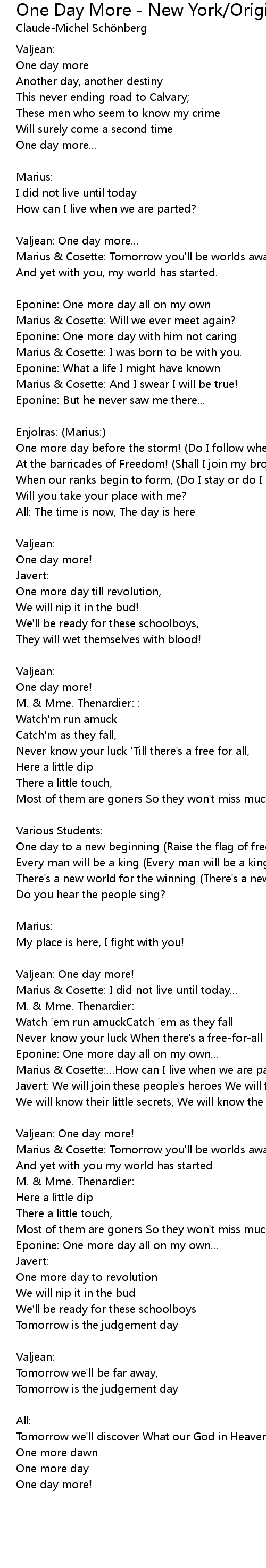 | Song | One Day More - New York/Original Broadway Cast Version/1987 |