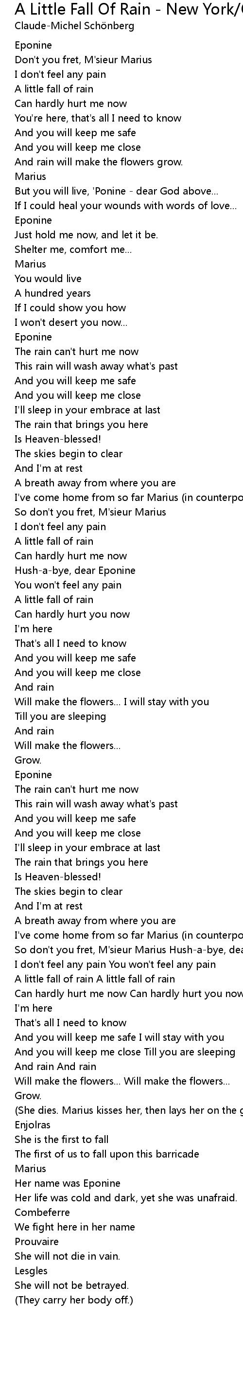 So don't you fret, M'sieur Marius Hush-a-bye, dear Eponine |