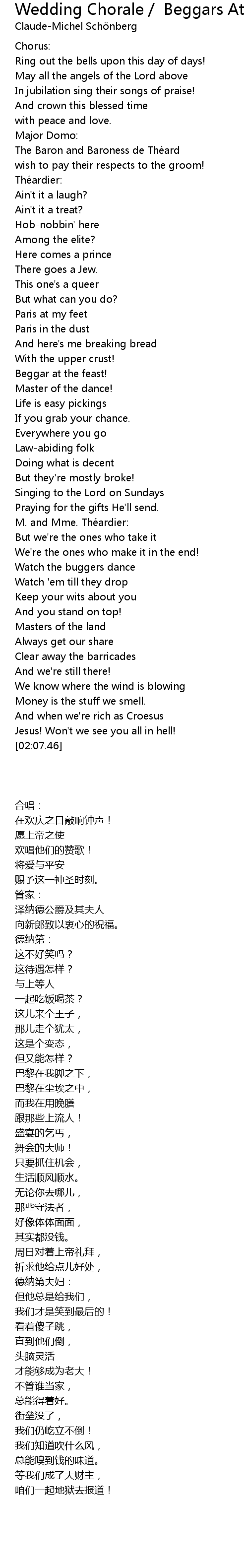 | [01:38.11] | M. and Mme. Thé ardier: |