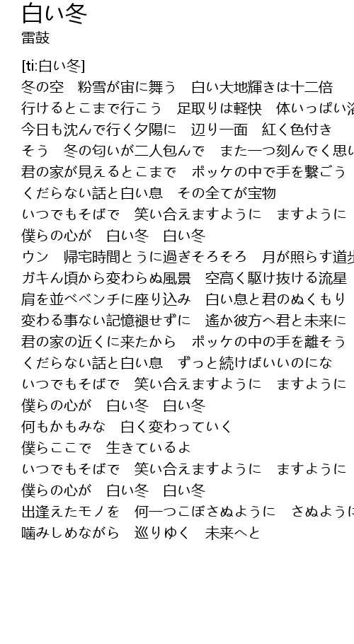 | [03:35.492] | 僕らの心が 白い冬 白い冬 |