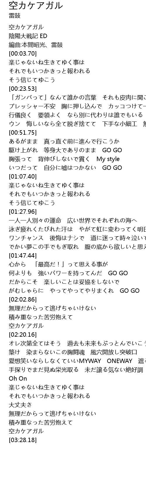 | [00:55.85] | 駆け上がれ 等身大でありのまま GO GO |