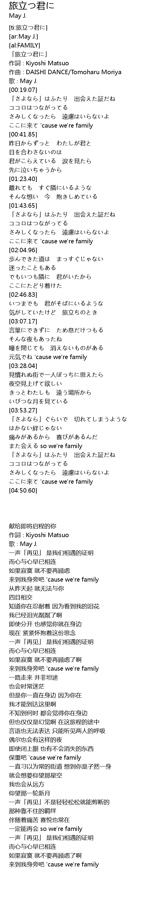 | [03:23.82] | 元気でね 'cause we're family |