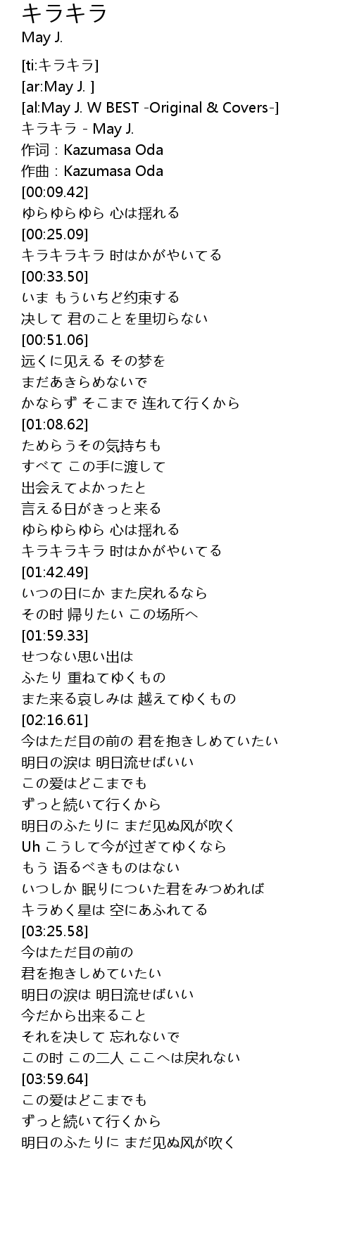| [00:26.50] | キラキラキラ 时はかがやいてる |