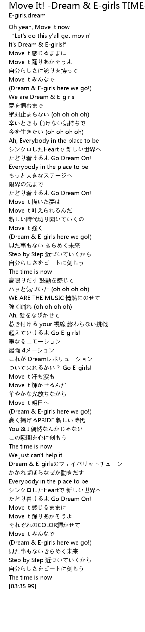 | [03:16.66] | (Dream & E-girls here we go!) |