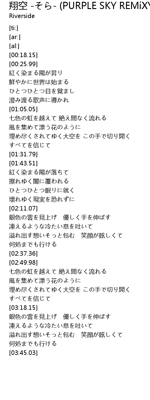| [01:05.66] | 七色の虹を越えて 絶え間なく流れる |