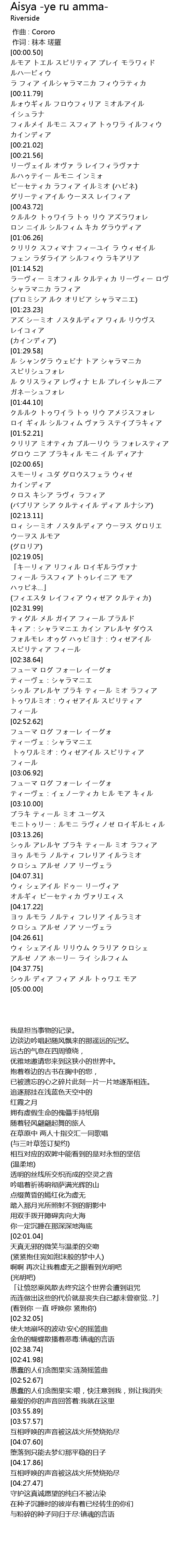 [01:15.12] ラーヴィー ミオフィル クルティカ リーヴィー ロヴ シャラマニカ ラフィア