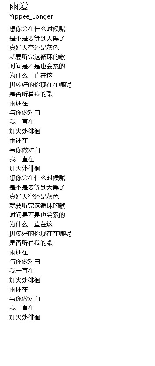 | [02:12.15] | jiù yào tīng wán zhè xún huán de gē |
