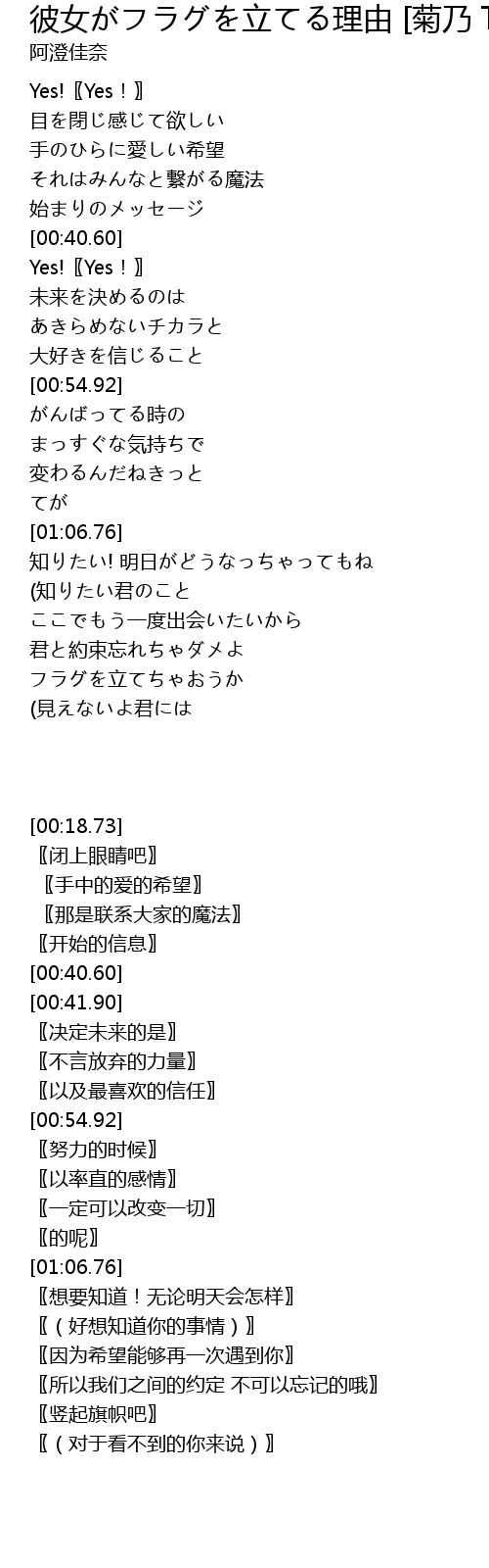 | Song | 彼女がフラグを立てる理由 [菊乃 TV Size] |