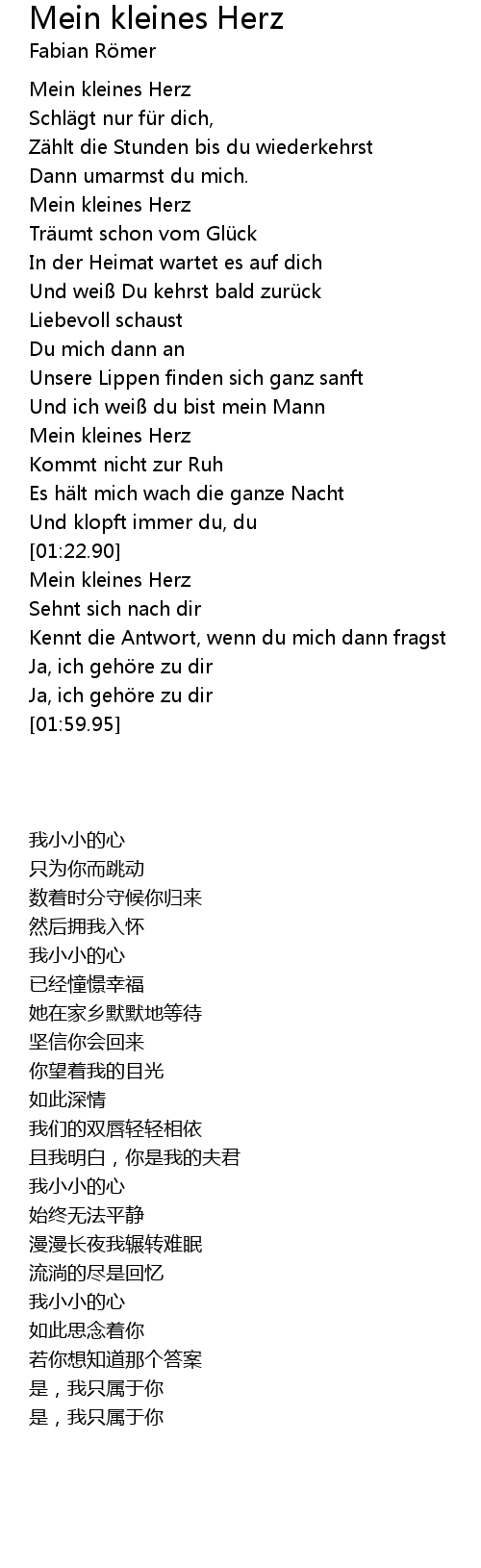 | [00:58.91] | Und ich wei du bist mein Mann |