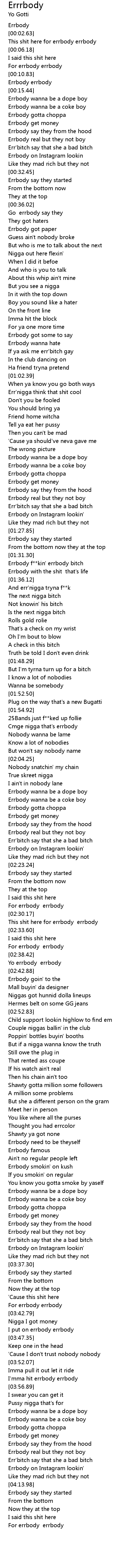 | [01:32.48] | Errbody f**kin' errbody bitch |