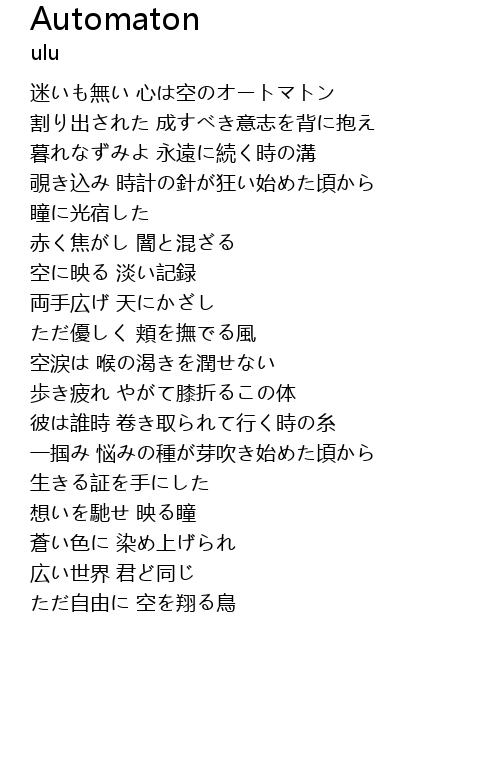 | [00:19.51] | 迷いも無い 心は空のオートマトン |