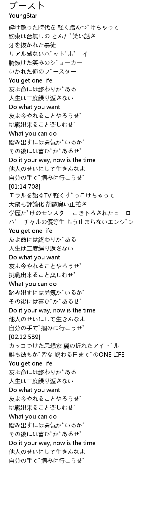 | [01:54.828] | 人生は二度繰り返さない |
