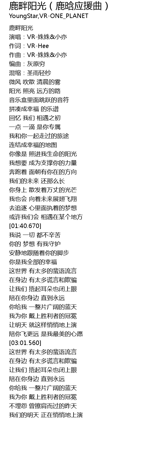 | [00:00.000] | 鹿畔阳光 |