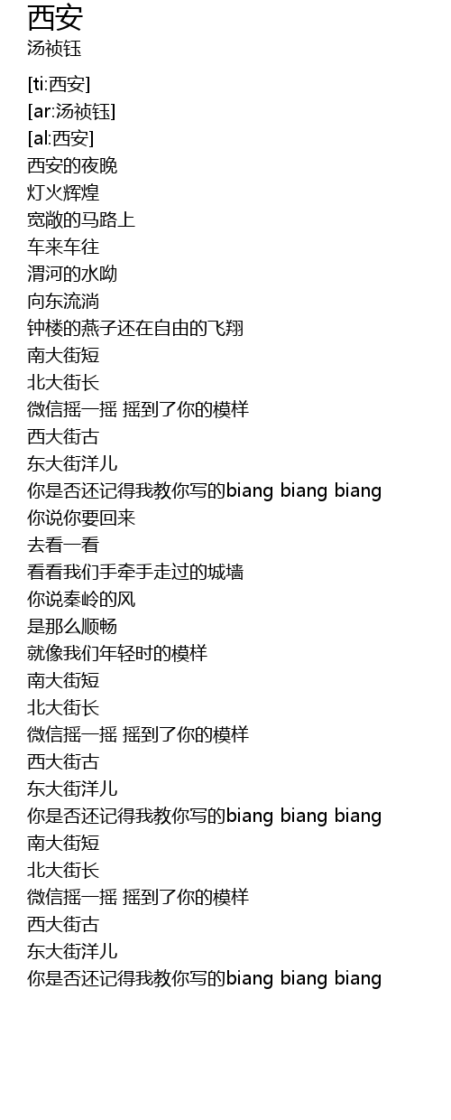 | [03:53.01] | 你是否还记得我教你写的biang biang biang |