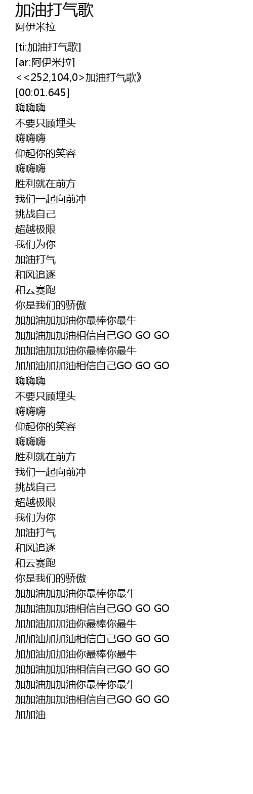 | [00:00.320] | <<252,104,0>加油打气歌》 |