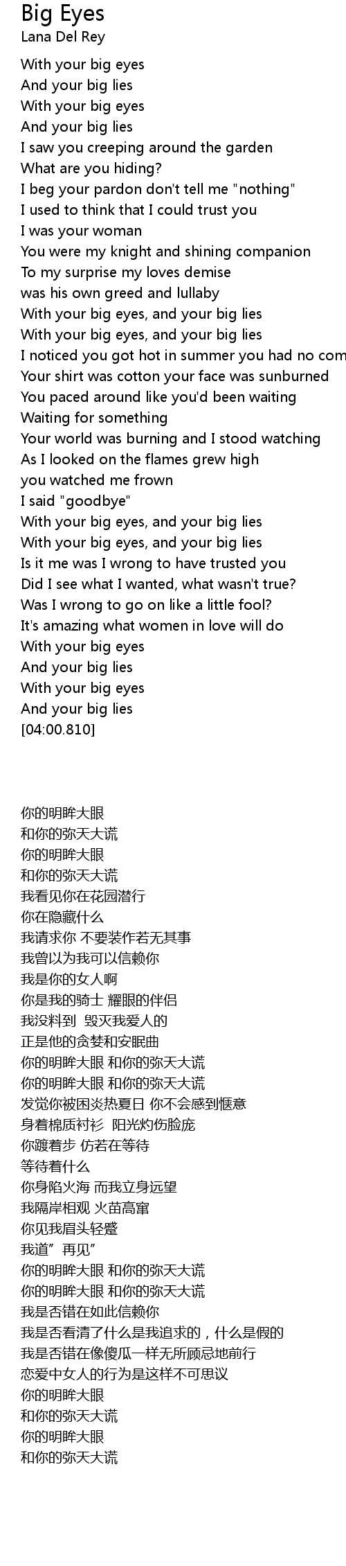 With your big eyes, and your big lies |