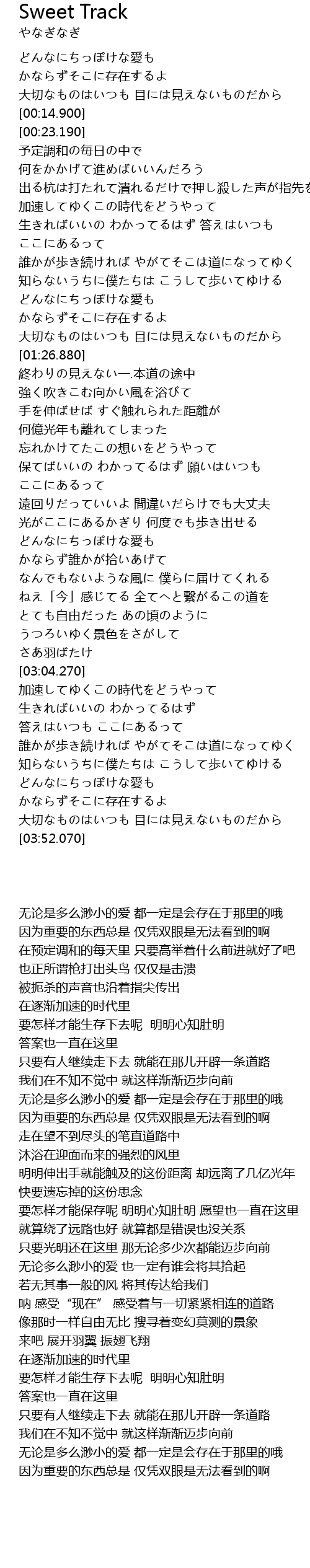 | [03:37.240] | どんなにちっぽけな愛も かならずそこに存在するよ |