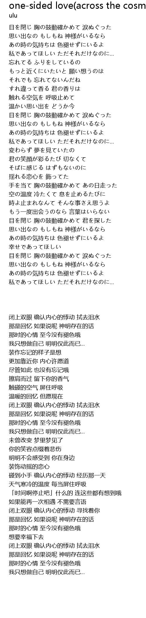 | [00:09.72] | 思い出なの もしもね 神様がいるなら |