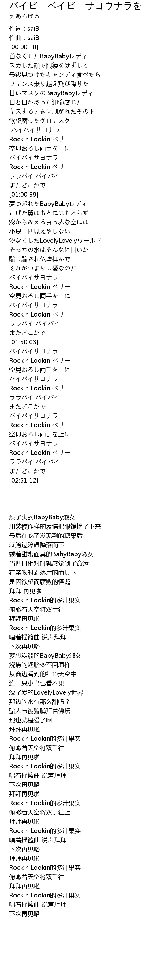 | [00:17.67] | 首なくしたBabyBabyレディ |