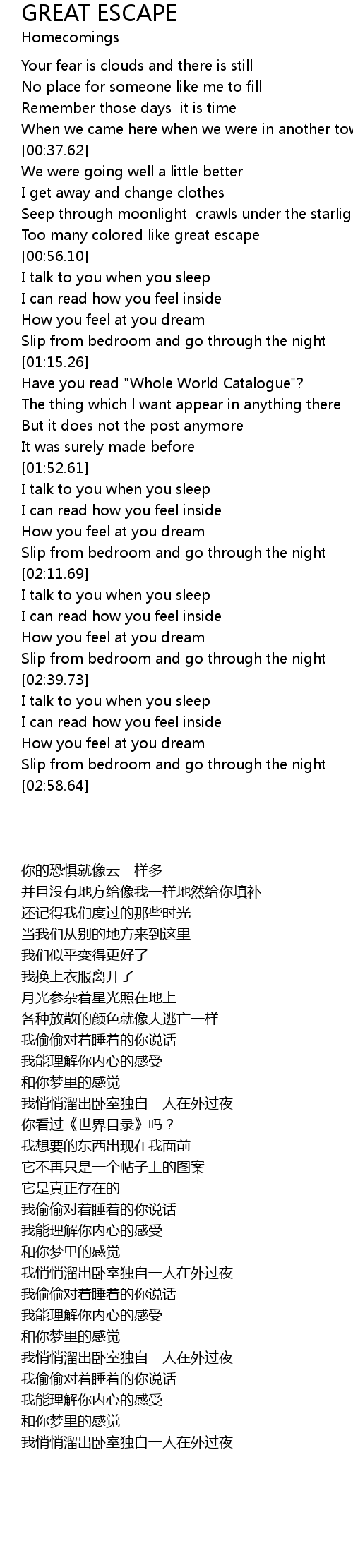 GREAT ESCAPE Lyrics