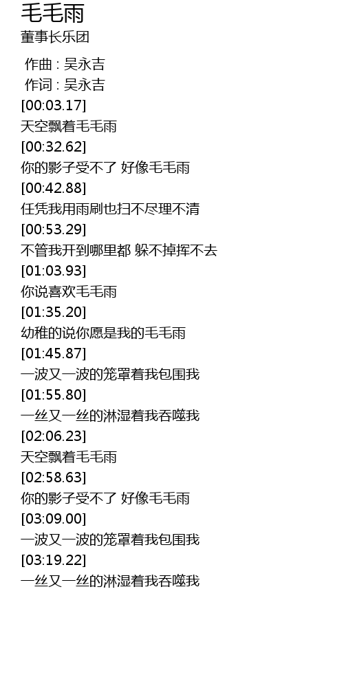 | [03:02.91] | 你的影子受不了 好像毛毛雨 |