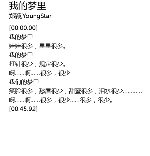 | [00:25.41] | 笑脸很多,愁眉很少,甜蜜很多,泪水很少………… |
