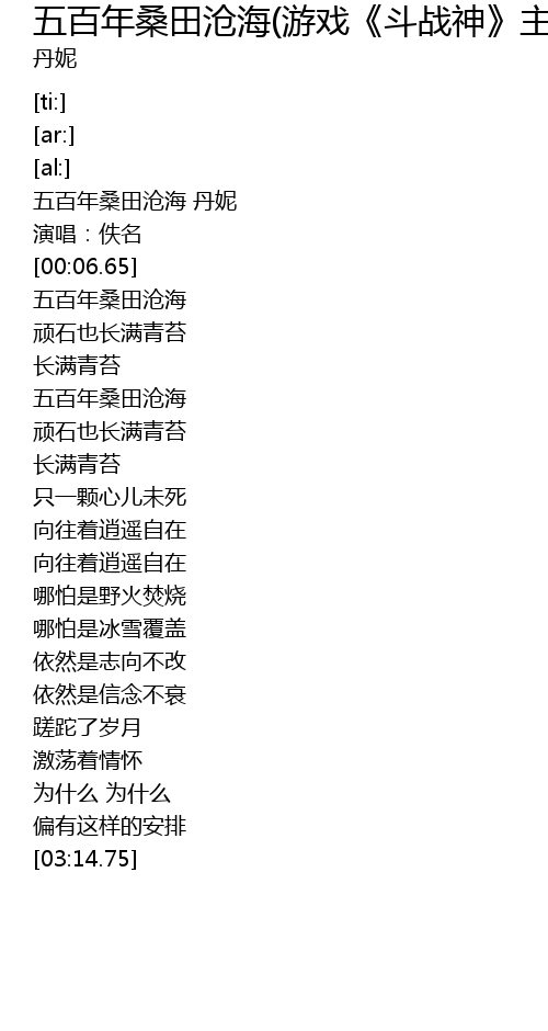 | [00:04.30] | 五百年桑田沧海 丹妮 |