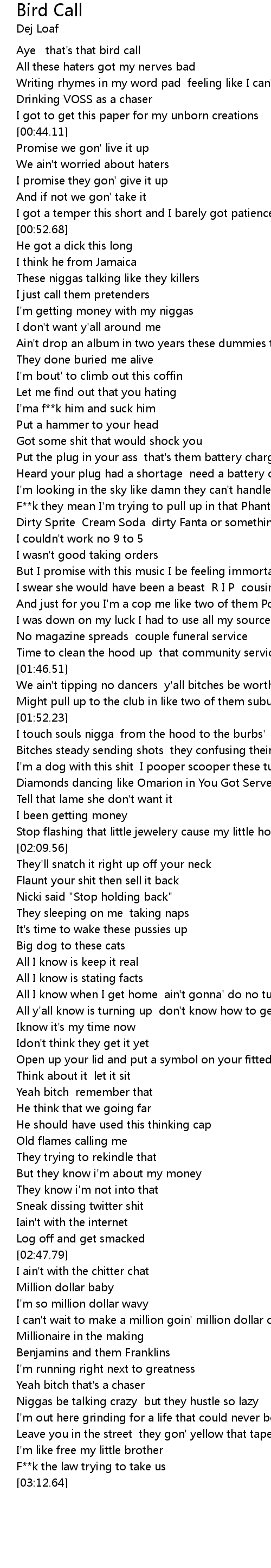 | [01:47.23] | We ain't tipping no dancers y'all bitches be worthless |
