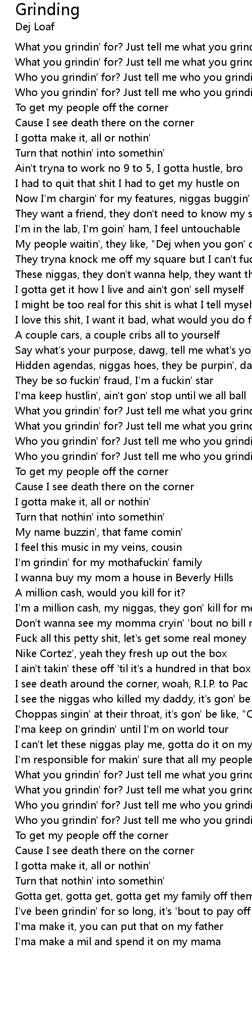 | [03:02.42] | Who you grindin' for? Just tell me who you grindin' for |